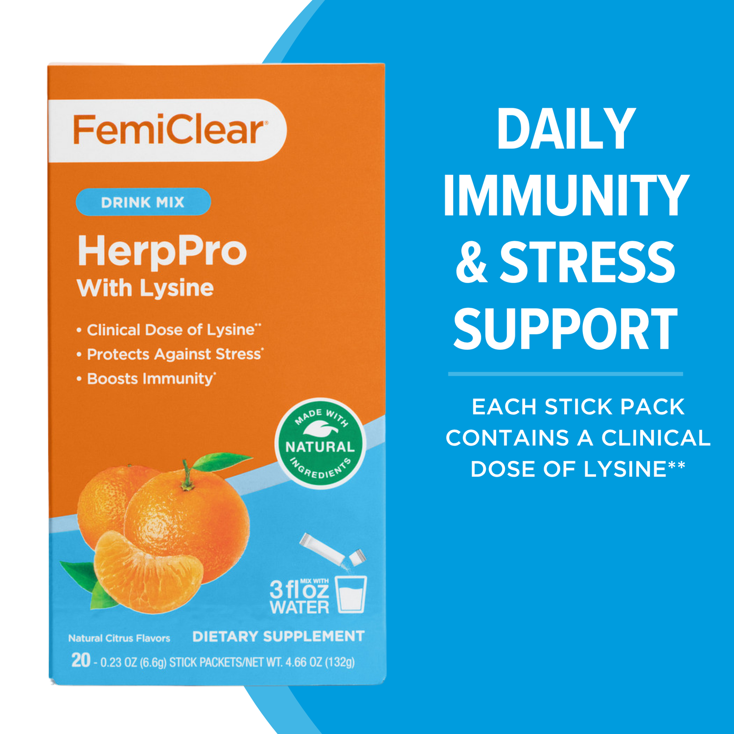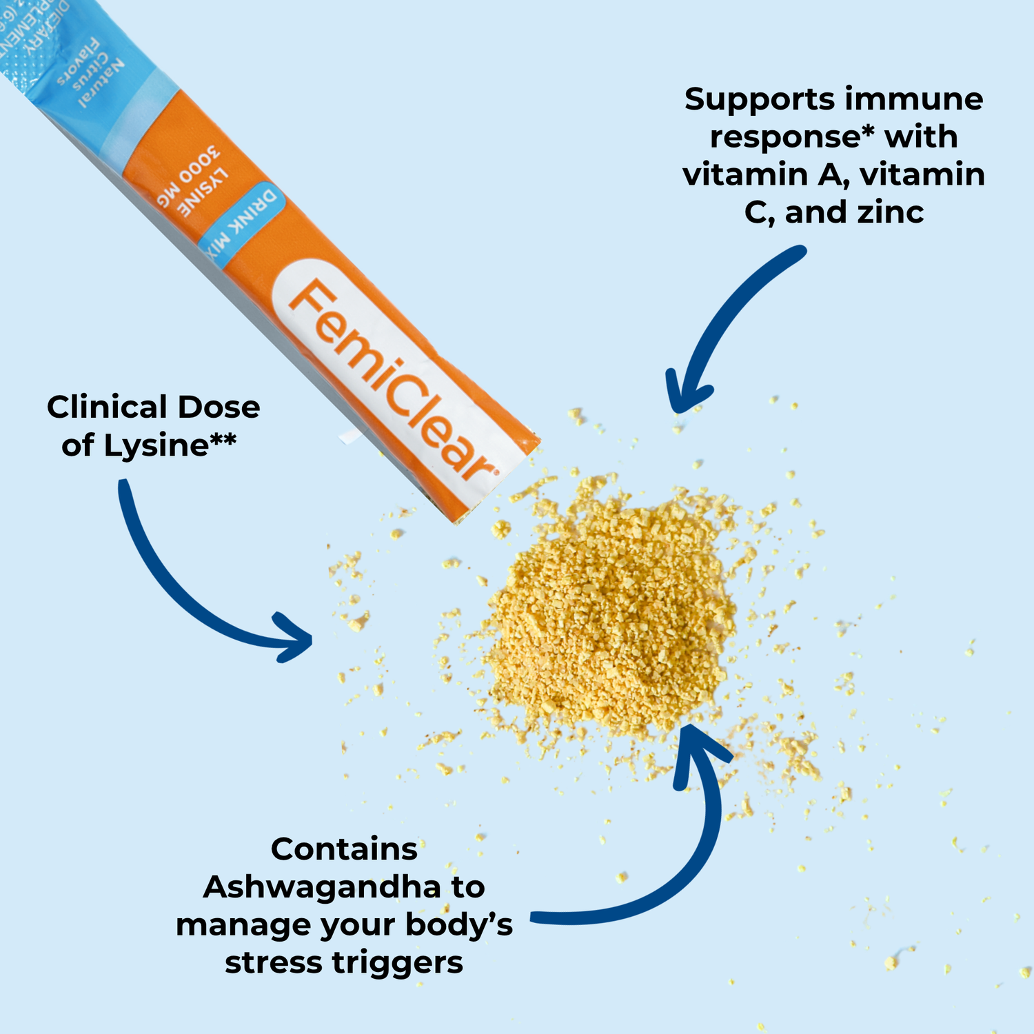 A 3oz daily drink mix that helps manage your stress response and boosts your immune system. Building a healthy immune system and minimizing stress can help empower your body to reduce outbreak frequency, duration, and severity. Specially formulated to target your immune system, manage your body’s stress response and harness the known benefits of L-Lysine, which has been shown to interfere with herpes virus replication. ◊◊1