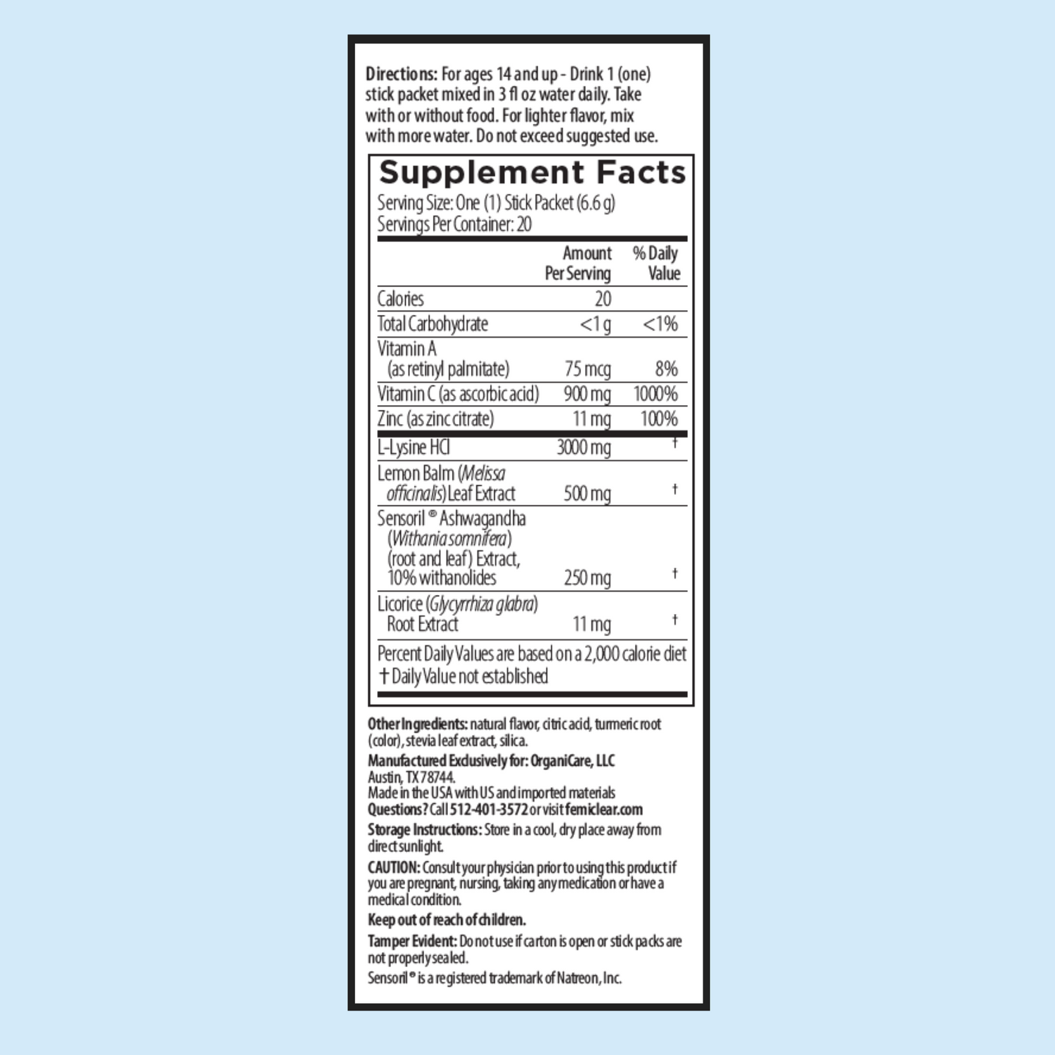 - Comes with 20 discrete stick packs - no mention of herpes on the packaging!